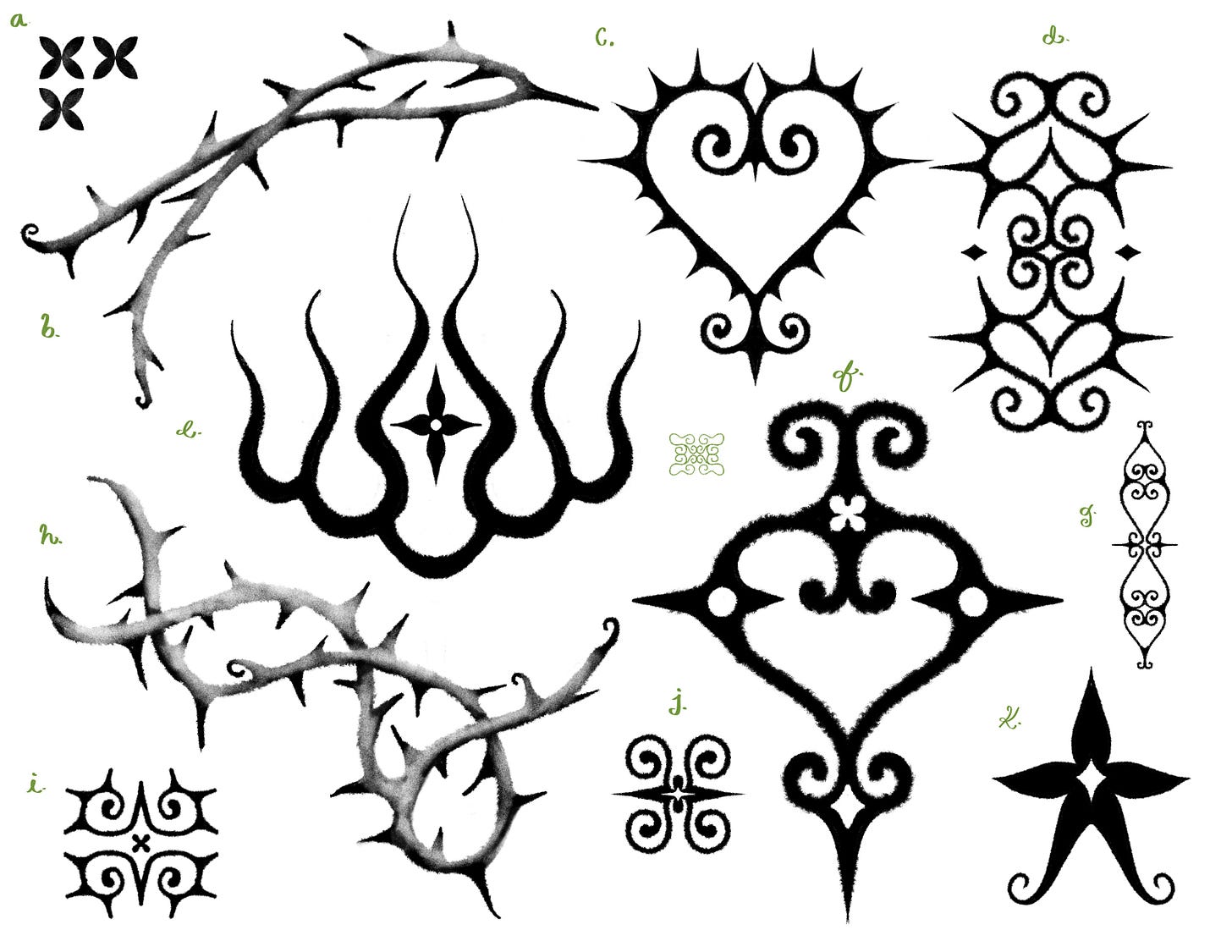 I’m offering these designs as unique (not-repeatable) but we can either do them in solid black, dotted black, grey, or shaded like some options in the above first photo.
